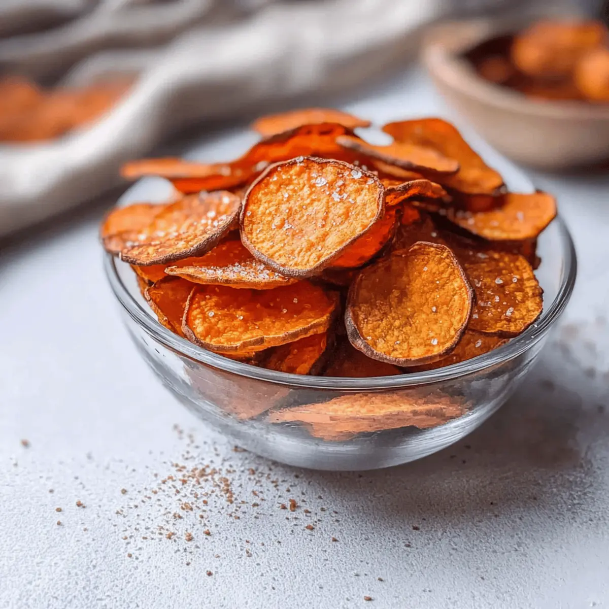 These Air Fryer Sweet Potato Chips are perfect for meal prep enthusiasts who want to save time on busy days! You can slice and season the sweet potatoes up to 24 hours in advance, storing them wrapped in the refrigerator to maintain freshness and prevent browning. When you’re ready to enjoy a crunchy snack, simply place the prepped chips in the air fryer and cook them straight from the fridge—no need to wait! This not only speeds up your cooking time but also guarantees that you’ll have a delicious, homemade snack without the hassle. Just remember to allow the chips to cool on a wire rack after air frying for maximum crispiness.