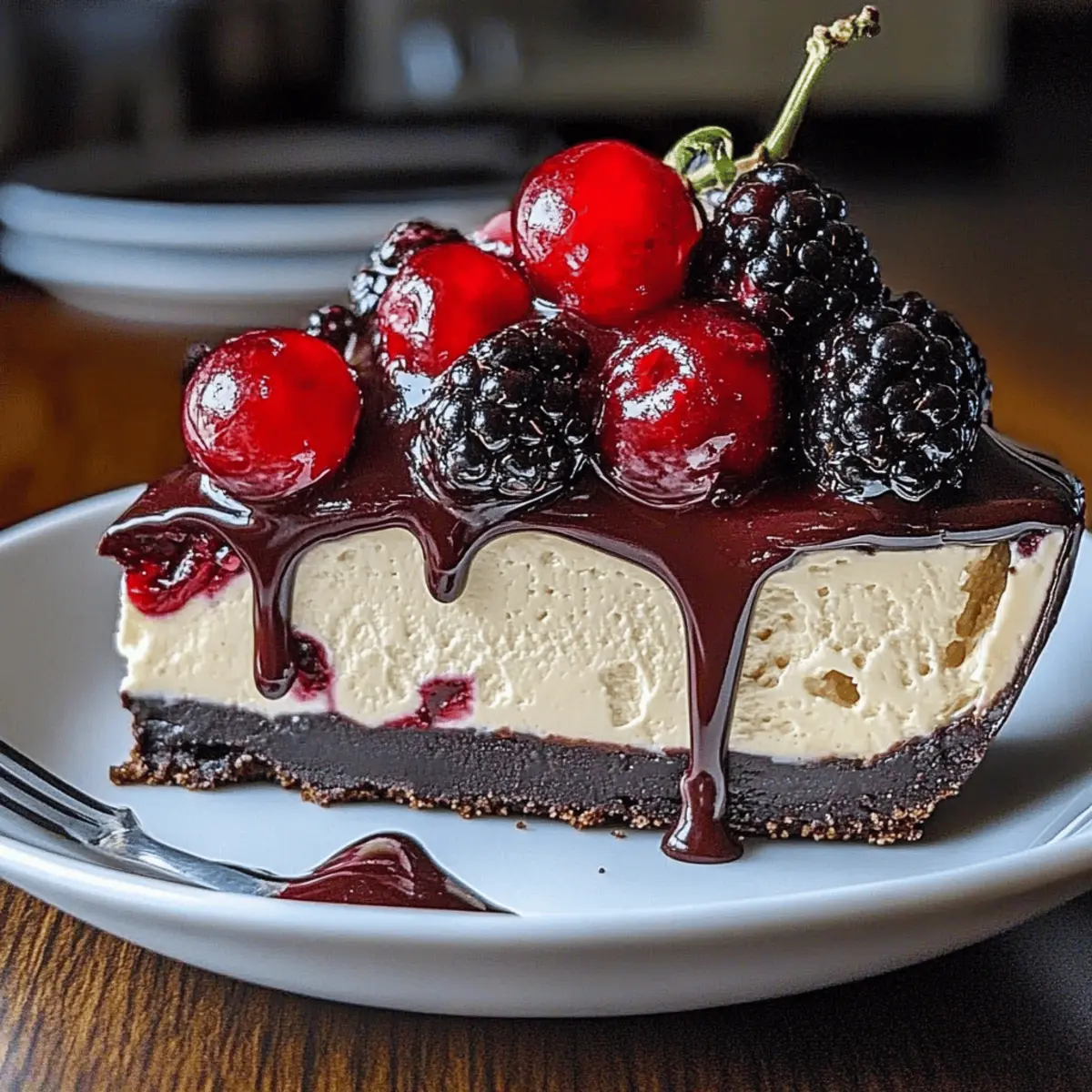 Jump to Recipe Print RecipeAs the summer sun begins to set, the air fills with the sweet aroma of ripe berries that beckon for a dessert worthy of celebration. Enter the No-Bake Black Forest Berry Cheesecake, a delightful creation that turns those luscious fruits and velvety cream cheese into a sensational treat, all without the hassle of an oven. Not only is this recipe a breeze to whip up, making it ideal for busy weeknights or unexpected guests, but it also showcases beautiful layers of flavor and texture that will leave everyone wanting more. The combination of creamy filling atop a crunchy biscuit base, elegantly topped with fresh mixed berries and a hint of cherry drizzle, transforms any gathering into a moment to savor. Curious about how you can craft this indulgent yet effortless dessert at home? Let’s dive in! Why Choose No-Bake Cheesecake? Simplicity: No baking means anyone can succeed! Just mix, chill, and serve. Decadent Flavor: Rich cream cheese blended with chocolate creates a luxurious dessert that satisfies your sweet tooth. Fresh Ingredients: Combining seasonal berries not only brightens the dish but enhances the nutrition too! Crowd-Pleaser: Perfect for a gathering, this cheesecake is sure to impress friends and family alike. Time-Saving: Whip it up in minutes, leaving you more time to enjoy the company of loved ones. Looking for more delicious cheesecake recipes to spark your creativity? Check out this Strawberry Swirl Cheesecake or indulge in the rich flavors of a Chocolate Hazelnut Cheesecake. Black Forest Berry Cheesecake Ingredients For the Biscuit Base • Digestive Biscuits or Graham Crackers – Choose your favorite for a crumbly, crunchy layer that serves as the foundation. • Butter – Melted, this helps bind the biscuits together for a sturdy base. For the Cheesecake Filling • Cream Cheese – Soften it beforehand for a smooth, creamy texture that mixes effortlessly. • Powdered Sugar – This sweetens the filling and stabilizes it when whipped; feel free to use a sugar alternative for a lighter option. • Heavy Cream – Whipped to fluffy perfection, it adds lightness to the cheesecake. Chill it beforehand for best results. For the Topping • Mixed Berries (strawberries, blueberries, raspberries) – Use seasonal varieties for a vibrant, fruity finish that elevates your Black Forest Berry Cheesecake. • Cherry Fruit Filling – Add this to enhance flavor and complement your cheesecake; you can swap it with other fruit preserves for different tastes. Every layer adds to the experience, creating a dessert that’s as delightful to the eyes as it is to the palate! Step‑by‑Step Instructions for No-Bake Black Forest Berry Cheesecake Step 1: Prepare the Biscuit Base Begin by crushing about 200g of digestive biscuits or graham crackers into fine crumbs using a food processor or rolling pin. In a bowl, combine the crumbs with 100g of melted butter until well mixed. Press this mixture firmly into the base of a 9-inch springform pan, creating an even layer. Chill in the refrigerator for at least 30 minutes to allow it to set. Step 2: Whip Up the Cheesecake Filling In a mixing bowl, beat 250g of softened cream cheese with 100g of powdered sugar until the mixture is smooth and creamy. In another bowl, whip 250ml of heavy cream until stiff peaks form. Gently fold the whipped cream into the cream cheese mixture until fully incorporated, making sure to keep it light and airy. This creamy filling will be the heart of your Black Forest Berry Cheesecake. Step 3: Assemble the Cheesecake Remove the biscuit base from the fridge and pour the cheesecake filling over it, smoothing the top with a spatula. Ensure the filling is evenly spread to create a beautiful layer. Once prepared, cover the cheesecake with plastic wrap, and return it to the refrigerator, allowing it to chill for at least 4 hours or until it sets properly—overnight works best for optimal texture. Step 4: Prepare the Topping After the cheesecake is set, wash and slice a mix of fresh berries, such as strawberries, blueberries, and raspberries. Arrange the berries beautifully over the top of the cheesecake. Drizzle with about 150g of cherry fruit filling, allowing it to flow over the berries and enhance the Black Forest theme. This colorful topping adds a fresh burst of flavor, making your dessert visually appealing. Step 5: Serve and Enjoy When ready to serve, carefully remove the sides of the springform pan. Slice the No-Bake Black Forest Berry Cheesecake into wedges and place on dessert plates. For an extra touch, garnish with additional fresh berries or a dollop of whipped cream. Serve chilled, allowing everyone to savor the delicious layers of flavor and texture in this delightful cheesecake. Make Ahead Options These No-Bake Black Forest Berry Cheesecakes are ideal for meal prep, allowing you to enjoy a decadent dessert with minimal effort. You can prepare the biscuit base and cheesecake filling up to 24 hours in advance. Simply crush the biscuits, mix with melted butter, and press into the springform pan, then refrigerate. For the filling, whip the cream cheese and heavy cream mixture a day before serving and keep it chilled. On the day you plan to serve, just add the berry topping and drizzle with cherry fruit filling. This ensures your cheesecake tastes just as delicious and fresh while saving you precious time on busy days! What to Serve with No-Bake Black Forest Berry Cheesecake To create an unforgettable meal, consider delightful accompaniments that elevate the taste and experience of your decadent dessert. Whipped Cream: A light, fluffy topping adds a perfect creaminess, beautifully balancing the richness of the cheesecake. Fresh Mint Leaves: A sprinkle of vibrant mint not only enhances the dessert’s visual appeal but also refreshes your palate with every bite. Chocolate Shavings: These decadent curls add an extra touch of indulgence. They complement the chocolate flavors while providing