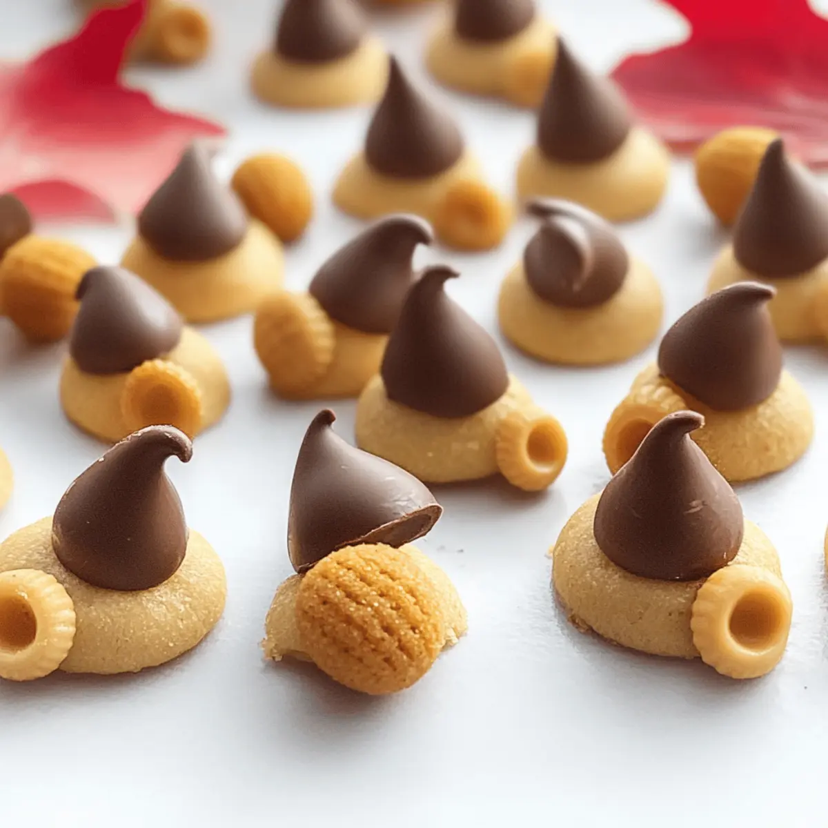 Jump to Recipe Print RecipeAs I gazed at the changing leaves outside, I couldn’t help but be inspired by the holiday spirit in the air. That’s when I decided to whip up a batch of Candy Acorns, an adorable treat that bridges nostalgia with festive fun. With just a few ingredients and less than 10 minutes of prep time, these delightful bites not only look great on any holiday table but are also a fantastic way to engage kids in the kitchen. The recipe offers endless variations by allowing you to choose different chocolate flavors and cookie bases, making them customizable for every palate. Who wouldn’t love reaching for a sweet, crunchy acorn that feels like a cozy hug in dessert form? Stick around; I promise you’ll find a new favorite holiday tradition! Why Are Candy Acorns So Special? Quick and Easy: These Candy Acorns come together in under 10 minutes, making them a perfect last-minute treat for unexpected holiday guests. Kid-Friendly Fun: Involve the little ones! This simple recipe turns cooking into a joyous activity, allowing them to create and customize their own treats. Endless Variations: With options for different chocolate flavors and cookie bases, you can easily adapt this recipe to please everyone’s tastes, from dark chocolate lovers to fans of peanut butter. Visual Appeal: These cute, acorn-shaped candies will be the star of any dessert table, impressing your friends and family with their festive charm. Light Indulgence: At only 30 calories each, these treats offer a guilt-free way to satisfy your sweet tooth without sacrificing flavor. Additionally, try serving them alongside other fun treats in your homemade holiday goodies collection! Candy Acorns Ingredients For the Acorns • Chocolate Kisses – The primary sweet building block; choose your favorite flavor like milk chocolate or pumpkin spice for a seasonal twist. • Mini Vanilla Wafers – These act as the sturdy base; about half of an 11-ounce package will do the trick. For the “Glue” • Baking Chips – Use them to secure the Kisses and form the cap; you can mix and match flavors for a delightful surprise. • Coconut Oil – Ensures your baking chips melt smoothly; if unavailable, any cooking oil will work just fine. Optional Variations • Mini Peanut Butter Cookies – Swap in as an exciting base for a nutty flavor; consider pairing with peanut butter chips for an extra kick! • Colored Baking Chips – Perfect for adding a festive touch that fits the holiday theme; get creative with colors! Elevate your holiday treats with these delightful Candy Acorns that are not only fun to make but customizable for everyone’s taste! Step‑by‑Step Instructions for Candy Acorns Step 1: Unwrap the Kisses Begin by unwrapping your desired number of Chocolate Kisses. This will save you time when you’re assembling your Candy Acorns. Set the unwrapped Kisses aside on a clean plate to keep them organized. Aim for at least one for each wafer, plus a few extra for snacking! Step 2: Prepare the Wafers Next, take your mini vanilla wafers and place them flat-side up on a sheet of wax paper. This not only creates a non-stick surface but also makes it easy to assemble your Candy Acorns without them sliding around. Make sure to leave some space between each wafer for easy access as you work. Step 3: Melt the Baking Chips In a microwave-safe bowl, combine half of the baking chips with a teaspoon of coconut oil. Microwave the mixture in 30-second intervals, stirring in between until smooth and glossy. This usually takes about 1-2 minutes total. Ensure the chocolate is not too hot before using; it should be warm and fluid for the best assembly. Step 4: Attach the Kisses Using a toothpick, dab a small amount of the melted chocolate onto the flat side of each wafer. Quickly press a Chocolate Kiss into the melted chocolate, ensuring its base is securely attached. Allow each Kiss to set with the pointed side up, creating the shape of your Candy Acorns. Step 5: Add the Acorn Caps Now, take a clean toothpick and repeat the process by dabbing melted chocolate on the opposite side of the wafer. Stick an unmelted baking chip into the chocolate, where it will act as the stem of the acorn. Hold it in place for a few seconds until it adheres, ensuring each Candy Acorn is complete. Step 6: Cool Before Serving Once all your Candy Acorns are assembled, let them cool completely at room temperature. This usually takes about 10-15 minutes, allowing the chocolate to harden and ensuring each acorn holds its shape. Once set, carefully transfer them to a decorative platter and get ready to impress your guests! How to Store and Freeze Candy Acorns Room Temperature: Keep your Candy Acorns in an airtight container at room temperature for up to 2 days. This helps maintain their delightful crunch and ensures they stay fresh. Fridge: If you’re not serving them right away, you can refrigerate the acorns for up to a week. Just ensure they are well-wrapped to prevent any flavor absorption from other foods. Freezer: For longer storage, Candy Acorns can be frozen for up to 3 months. Layer them between parchment paper in a freezer-safe container to avoid clumping together. Reheating: When ready to enjoy, remove from the freezer and let them sit at room temperature for about 15-20 minutes before serving. This will help restore their lovely texture! Make Ahead Options These Candy Acorns are perfect for meal prep enthusiasts looking to save time during the busy holiday season! You can prepare the mini vanilla wafers and arrange them on wax paper up to 24 hours in advance to allow for easy assembly later. Additionally, melt the baking chips and coconut oil mixture ahead of time, storing it in a microwave-safe container in the refrigerator; it can be reheated before use. When you’re ready to finish your Candy Acorns, simply pull out the wafers and melted chocolate, attach the Kisses, and let them cool. By prepping ahead, you’ll enjoy just as delightful 