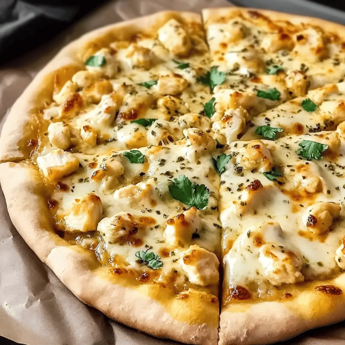 Jump to Recipe Print RecipeThe aroma of freshly baked pizza wafting through the air is enough to make anyone’s heart skip a beat. When I first combined creamy homemade Alfredo sauce with tender, seasoned chicken for this Chicken Alfredo Pizza, it was a culinary moment I’ll never forget. This dish elevates your typical pizza night, transforming it into a creamy comfort that soothes the soul while tantalizing the taste buds. With quick prep and an indulgent flavor profile, it’s perfect for impressing friends and family or simply treating yourself to a slice of happiness. Whether enjoyed as a weeknight meal or a special occasion feast, this pizza promises a melt-in-your-mouth experience that you’ll want to make again and again. Ready to dive into this delicious adventure? Why is Chicken Alfredo Pizza a Must-Try? Irresistible Flavor: The fusion of creamy alfredo sauce and tender chicken creates a rich flavor that tantalizes your taste buds. Comfort Food Elevated: This pizza transcends ordinary pizza night, delivering a cozy, indulgent meal that feels special every time. Quick to Prepare: With simple steps and easy-to-find ingredients, your homemade masterpiece is just a few minutes away! Versatile Ingredients: Swap the chicken for grilled veggies, or add garlic and spinach to the sauce for a personalized touch. Crowd-Pleasing Appeal: Perfect for family dinners or gatherings—everyone will be asking for seconds! For another crowd favorite, try our delicious Cajun Chicken Alfredo or Garlic Butter Chicken. Experience this delightful dish that marries tradition and innovation with every slice! Chicken Alfredo Pizza Ingredients For the Alfredo Sauce • Heavy Cream – Provides a luxurious base; opt for high-quality cream for a richer flavor. • Parmigiano-Reggiano – Adds a nutty, cheesy kick; freshly grated enhances the sauce’s texture. For the Pizza • Cooked Chicken – Offers protein and heartiness; pre-cooked and seasoned chicken ensures a quick prep. • Mozzarella Cheese – Delivers that classic pizza stretch and flavor; for extra creaminess, try ricotta as a blend. • Provolone Cheese – Introduces a delightful rich flavor; aids in creating a gooey cheese layer on top. • Pizza Dough – Forms the essential crust; homemade offers the best texture, but store-bought works too! • Italian Herbs (optional) – Elevates the pizza’s flavor; consider adding dried oregano or basil for a burst of freshness. With these simple yet delightful ingredients, you’re well on your way to making an unbelievably delicious Chicken Alfredo Pizza that’s sure to impress! Step‑by‑Step Instructions for Chicken Alfredo Pizza Step 1: Preheat the Oven Preheat your oven to 450°F (230°C) while you prepare the other ingredients. Place a baking stone or baking sheet inside to heat up for about 30 minutes. This ensures a crispy crust for your Chicken Alfredo Pizza, creating that perfect golden-brown finish when baked. Step 2: Prepare the Alfredo Sauce In a saucepan over medium heat, combine heavy cream and grated Parmigiano-Reggiano, stirring constantly. Allow it to simmer gently for 5-7 minutes until it thickens slightly. Watch for small bubbles to form, signaling it’s ready, and remove it from heat to prevent separation. Step 3: Roll Out the Pizza Dough Dust a clean surface with flour and roll out your pizza dough to your desired thickness, aiming for about 12 inches in diameter. Carefully transfer it onto a floured pizza peel or parchment paper, which makes it easier to move into the oven later. Step 4: Assemble the Pizza Spread a generous layer of your creamy Alfredo sauce over the rolled-out dough, leaving a small border around the edges for the crust. Evenly distribute the seasoned, cooked chicken pieces on top, followed by a liberal amount of mozzarella and provolone cheese to create that stretchy, gooey texture. Step 5: Bake the Pizza Carefully slide the assembled Chicken Alfredo Pizza onto your preheated baking stone or sheet. Bake for 10-15 minutes, watching closely until the edges are golden brown and the cheese is bubbly and slightly browned, signaling that it’s ready to come out. Step 6: Cool & Slice Let the pizza cool for about 5 minutes on a wire rack to allow the cheese to set, making slicing easier. Cut into wedges, and resist the urge to dive right in—this brief wait will enhance your tasting experience! How to Store and Freeze Chicken Alfredo Pizza Room Temperature: Enjoy your Chicken Alfredo Pizza fresh out of the oven. However, if left at room temperature, consume within 2 hours for safety. Fridge: Store leftover pizza in an airtight container in the fridge for up to 3-4 days. Reheat slices in the oven at 350°F until heated through, ensuring the cheese melty and delicious. Freezer: For longer storage, freeze unbaked, assembled Chicken Alfredo Pizza wrapped tightly in plastic wrap and aluminum foil for up to 3 months. Thaw in the refrigerator before baking. Reheating: To ensure maximum flavor, reheat leftover slices in the oven or a skillet on low heat, maintaining moisture and preventing sogginess. What to Serve with Chicken Alfredo Pizza Chicken Alfredo Pizza is a creamy dream come true, perfect for creating a harmonious, flavorful meal. Garlic Bread: Crispy on the outside with an aromatic blend of garlic and herbs, it’s the perfect companion for soaking up leftover alfredo sauce. Caesar Salad: The crunch of romaine lettuce and the tang of Caesar dressing add a refreshing contrast to the rich pizza, balancing your plate beautifully. Roasted Vegetables: A medley of seasonal veggies, roasted until caramelized, brings a touch of earthiness that perfectly complements the creamy flavors of your pizza. Caprese Salad: Juicy heirloom tomatoes, fresh basil, and mozzarella drizzled with balsamic glaze offer a light, vibrant side that enhances the Italian experience. Wine Pairing: A glass of chilled Pinot Grigio elevates your meal, with its crisp acidity bringing a refre
