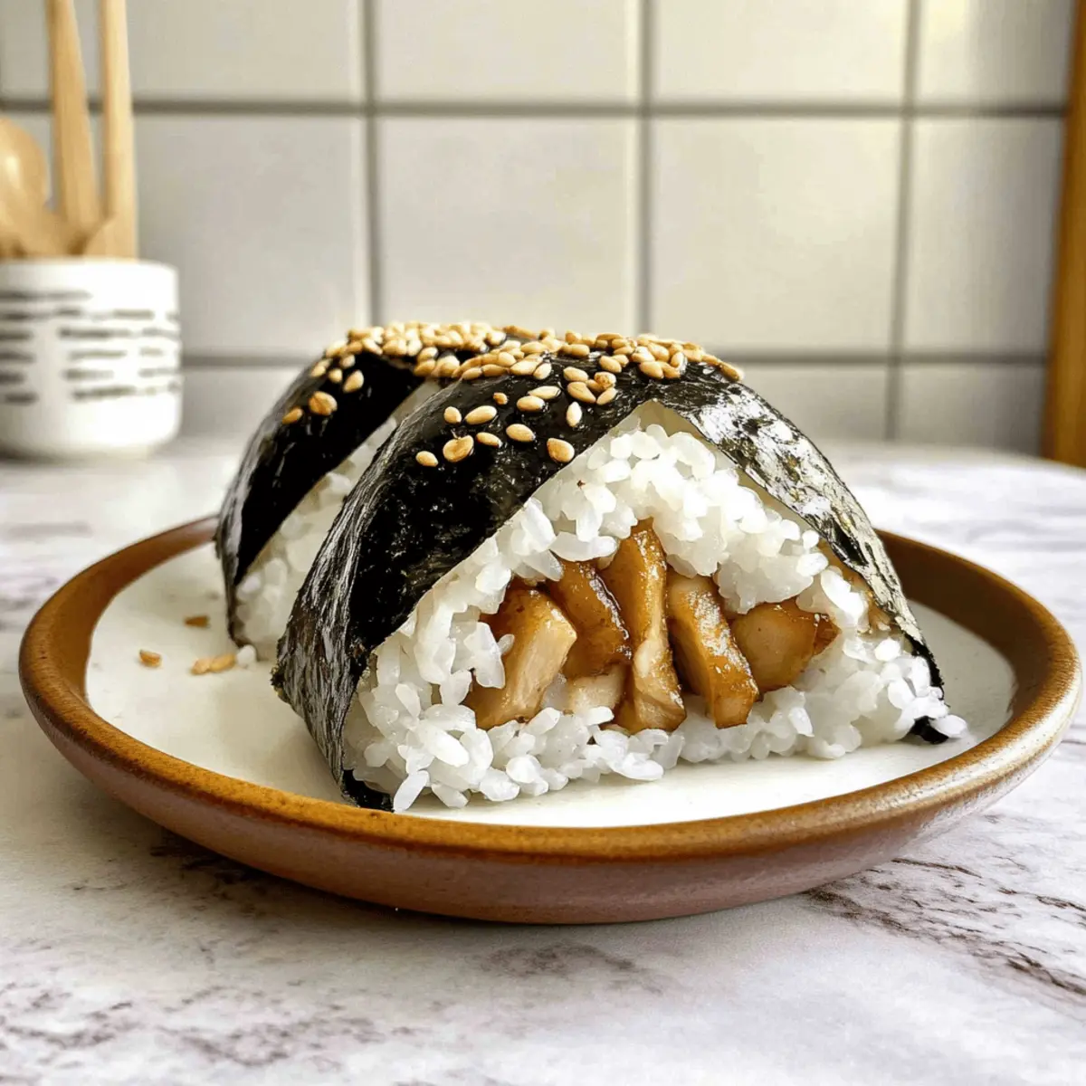 Jump to Recipe Print RecipeAs I stood in my kitchen, the tantalizing aroma of teriyaki chicken filled the air, instantly transporting me to the streets of Japan where onigiri are a beloved snack. This Chicken Onigiri recipe combines deliciously marinated chicken with sticky sushi rice, making it one of my go-to comfort food creations. Not only is it surprisingly easy to make, but it also offers an incredible handheld meal that’s perfect for busy days or leisurely picnics. With endless variations—think juicy drumsticks or tender thighs—this traditional Japanese dish lets you experiment while bringing a taste of Japan right to your table. Ready to dive into a world of flavor that’s both satisfying and fun to prepare? Let’s get started! Why is Chicken Onigiri a must-try? Simplicity: This recipe is incredibly easy to follow, even for beginners, making it a fantastic introduction to Japanese cuisine. Flavor Explosion: The teriyaki marinade creates a perfect harmony of sweet and savory flavors, ensuring each bite is a delight. Versatile Filling: Whether you opt for chicken drumsticks, thighs, or even tofu, you can easily customize this dish to suit your taste. Portable Snack: Perfect for on-the-go meals, these onigiri are a fantastic alternative to greasy fast food. Serve alongside pickled veggies for a refreshing contrast! Fun to Make: Shaping the onigiri into cute triangles is a fun activity and sure to impress family and friends. This recipe will undoubtedly become one of your new favorites, just like my other go-to meals, such as Bbq Chicken Tostadas and Garlic Butter Chicken! Chicken Onigiri Ingredients For the Rice • Sushi Rice – Provides the sticky texture needed for shaping onigiri. Note: Requires 15% more water than normal rice. • Fine Salt – Essential for seasoning the rice effectively. • Furikake (optional) – A Japanese seasoning that enhances flavor and presentation. For the Chicken Filling • Boneless Skinless Chicken – Drumsticks or thighs are ideal for maximum flavor; ground chicken also works. • Soy Sauce – Adds delicious umami flavor to the marinade and teriyaki sauce. • Sake – Introduces depth; substitute with water if needed. • Baking Soda – Tenderizes the chicken when marinated, leading to a juicier bite. • Cornstarch – Helps improve the texture of the cooked chicken. • Mirin – Sweet rice wine contributes to an authentic teriyaki flavor. • Brown Sugar – Balances savory flavors with a touch of sweetness. • Oil – For frying the chicken to a perfect crisp. • Garlic – Elevates the overall aroma and flavor of the chicken filling. For Wrapping and Serving • Nori – Seaweed strips add flavor and help hold the onigiri shape. Feel the excitement of crafting your very own Chicken Onigiri at home! Enjoy the delicious harmonizing flavors that await in each bite. Step‑by‑Step Instructions for Chicken Onigiri Step 1: Prepare Sushi Rice Begin by rinsing 1 cup of sushi rice under cold water until the water runs clear, then soak it for 30 minutes. Drain the rice and add it to a rice cooker or pot with 1.25 cups of water; cook according to your rice cooker’s settings or bring it to a boil, then simmer for 20 minutes until all water is absorbed. Once cooked, let it rest for 10 minutes before mixing in ½ teaspoon of fine salt and optional furikake for extra flavor and seasoning. Step 2: Marinate the Chicken While the rice is resting, prepare the chicken onigiri filling. Cut your choice of boneless skinless chicken (drumsticks or thighs) into bite-sized pieces. In a bowl, combine 2 tablespoons of soy sauce, 1 tablespoon of sake, ½ teaspoon of baking soda, and a pinch of cornstarch, then mix well. Add the chicken pieces, coat them thoroughly, and let marinate in the refrigerator for 30 minutes to let those flavors infuse. Step 3: Prepare Teriyaki Sauce In a small mixing bowl, whisk together 3 tablespoons of soy sauce, 1 tablespoon of mirin, and 1 tablespoon of brown sugar until the sugar dissolves completely. This will be your teriyaki sauce, adding delicious sweetness and depth to your chicken onigiri. Set aside for later use in the cooking process, ensuring all flavors meld beautifully in the final dish. Step 4: Cook the Chicken Heat 2 tablespoons of oil in a nonstick frying pan over medium-high heat. Once hot, add the marinated chicken and fry for about 4-5 minutes until the chicken is fully cooked through and golden brown. Stir in 1 minced garlic clove and sauté for an additional 30 seconds until fragrant. Then, pour in the prepared teriyaki sauce, allowing it to bubble and reduce slightly for 2-3 minutes, creating a thick, sticky glaze on the chicken. Step 5: Shape the Onigiri Once the sushi rice has cooled slightly, moisten your hands with water to prevent sticking. Grab a handful of rice (about 1/2 cup), then create a small well in the center. Spoon in a portion of the teriyaki chicken, followed by another handful of rice to cover it. Firmly press the rice together to form a triangle shape, ensuring the filling is secure. Repeat until all the rice and chicken are shaped into these delightful chicken onigiri. Step 6: Wrap with Nori Cut sheets of nori into strips, about 1-2 inches wide. Once your onigiri are shaped, take a piece of nori and wrap it around the bottom half of each rice triangle, giving it a touch of flavor and helping it maintain its shape. The nori adds a satisfying umami flavor, making each bite of chicken onigiri a delightful experience perfect for snacking or sharing. Make Ahead Options These Chicken Onigiri are a perfect meal prep solution for busy weeknights! You can marinate the chicken up to 24 hours in advance, allowing those delicious flavors to meld together nicely. Simply prepare the teriyaki sauce and the chicken filling, then store them in separate airtight containers in the refrigerator. You can also cook the rice ahead of time; ensure it cools completely and refrigerate for up to 3 days. When