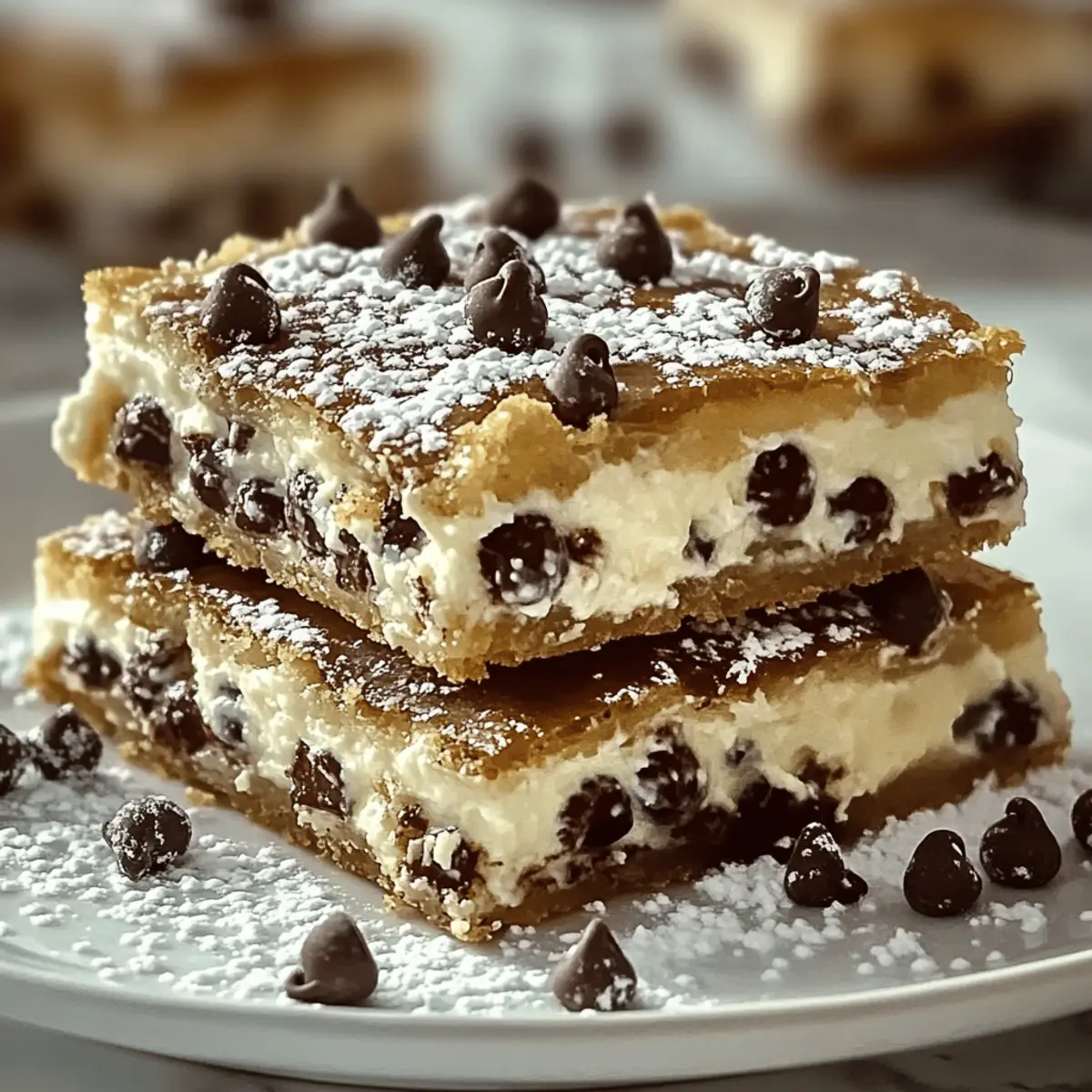 Jump to Recipe Print RecipeAs I whisked together the velvety ricotta and sweet powdered sugar, I couldn’t help but feel a wave of nostalgia wash over me—those lively Italian festivals filled with laughter and, of course, cannoli. This Classic Cannoli Squares recipe captures that very essence, offering you an easy dessert that transforms a few simple ingredients into a soul-soothing treat. Perfect for busy nights or gatherings with friends, these squares provide a delightful alternative to elaborate desserts, all while being make-ahead friendly. And if you’re looking to impress, they are a guaranteed crowd-pleaser! Are you ready to treat yourself to a slice of Italy right in your kitchen? Why Are Classic Cannoli Squares So Beloved? Irresistible Creaminess: The rich ricotta filling creates a smooth texture that just melts in your mouth, evoking the classic flavors of Italian cuisine. Effortless Preparation: With minimal effort, you can whip up these cannoli squares, making them a perfect choice for busy weeknights or last-minute gatherings. Make-Ahead Friendly: Prepare the filling a day in advance, so you can enjoy more time with loved ones and less time in the kitchen—ideal for holiday feasts and birthdays! Crowd-Pleaser Success: These squares are sure to impress friends and family, transforming any gathering into a festive celebration, reminiscent of your favorite Italian festival. Adaptable to Taste: With options for dairy-free and gluten-free variations, everyone can indulge in this delightful dessert, allowing you to cater to all dietary needs. Treat yourself to a slice of Italy and discover the charm of this Classic Cannoli Squares recipe. Classic Cannoli Squares Ingredients • Prepare to indulge in this delightful dessert! For the Filling Ricotta Cheese – Provides a rich, creamy filling; for the best flavor, use whole milk ricotta. Powdered Sugar – Adds sweetness to the filling; feel free to substitute with coconut sugar for a healthier touch. Vanilla Extract – Enhances the flavor; opt for pure vanilla to elevate the taste. Cinnamon – Adds a warm spice; if you prefer a classic flavor, it can be omitted. Mini Chocolate Chips – Adds sweetness and texture; dark chocolate varieties provide an even richer experience. For the Crust Pre-made Pie Crusts – Form the base and top layers of your dessert; homemade crusts can also be used for a personal touch. Egg – Used for an egg wash to give a lovely glossy finish to the crust. Sugar (for sprinkling) – Adds a delightful texture and sweetness on top after baking. Now that you have everything prepped, you’re just moments away from creating your oven-baked masterpiece of Classic Cannoli Squares! Step‑by‑Step Instructions for Classic Cannoli Squares Step 1: Prepare the Filling In a mixing bowl, combine 2 cups of ricotta cheese, 1 cup of powdered sugar, 1 teaspoon of vanilla extract, ½ teaspoon of cinnamon, and ½ cup of mini chocolate chips. Whisk these ingredients together until the mixture is smooth and creamy, ensuring that no lumps remain. This delightful filling will be the heart of your Classic Cannoli Squares, so set it aside while you prepare the crust. Step 2: Preheat the Oven Set your oven to 375°F (190°C) to preheat while you work on assembling your dessert. A properly preheated oven ensures that your Classic Cannoli Squares bake evenly, achieving a beautifully golden crust. This step is crucial, so take a moment to prepare the filling and crust while the oven warms up, creating a lovely cozy atmosphere in your kitchen. Step 3: Roll Out the Pie Crust Take a pre-made pie crust and carefully fit it into a 9×9-inch baking dish, making sure to press it into the corners and up the sides. This forms the base of your Classic Cannoli Squares. If you prefer a homemade crust, roll it out to the same size before laying it down in the baking dish. The crust should look smooth and even, ready to cradle the delicious filling. Step 4: Add the Filling Spoon the creamy ricotta filling evenly over the pie crust, ensuring it reaches all corners of the dish. Use a spatula to spread it evenly, creating a smooth layer that will be the highlight of your Classic Cannoli Squares. This step is essential for achieving balanced flavor in each square, so take care to spread the filling generously and uniformly. Step 5: Prepare the Top Crust Place a second pie crust over the filling, carefully aligning it with the edges of the bottom crust. Seal and crimp the edges together securely to prevent any filling from leaking during baking. Brush the top crust with a beaten egg for a glossy finish, and then sprinkle a tablespoon of sugar on top to create a delightful crunch. This step adds a charming touch to your Classic Cannoli Squares. Step 6: Bake Transfer your assembled Classic Cannoli Squares to the preheated oven and bake for 30-35 minutes. Keep an eye on it; you’re looking for a golden brown crust and bubbling filling as visual cues for doneness. The aroma wafting from the oven will make it hard to wait, but be patient—you want your dessert to be perfectly cooked! Step 7: Cool and Serve Once baked, remove the dish from the oven and allow the Classic Cannoli Squares to cool for at least 30 minutes. This cooling period is vital, as it helps the filling set, making it easier to slice into perfect squares. After cooling, use a sharp knife to cut into squares and serve, reveling in the rich flavors and textures of this Italian delight. How to Store and Freeze Classic Cannoli Squares • Room Temperature: Classic Cannoli Squares can be kept at room temperature for up to 2 days, but it’s best to cover them to retain their freshness. • Fridge: Store leftovers in an airtight container in the fridge for up to 5 days. This will help maintain the creamy texture of the filling. • Freezer: For longer storage, freeze the squares in individual portions, wrapped tightly in plastic wrap, for up to 2 months. Thaw in the fridge overnight bef