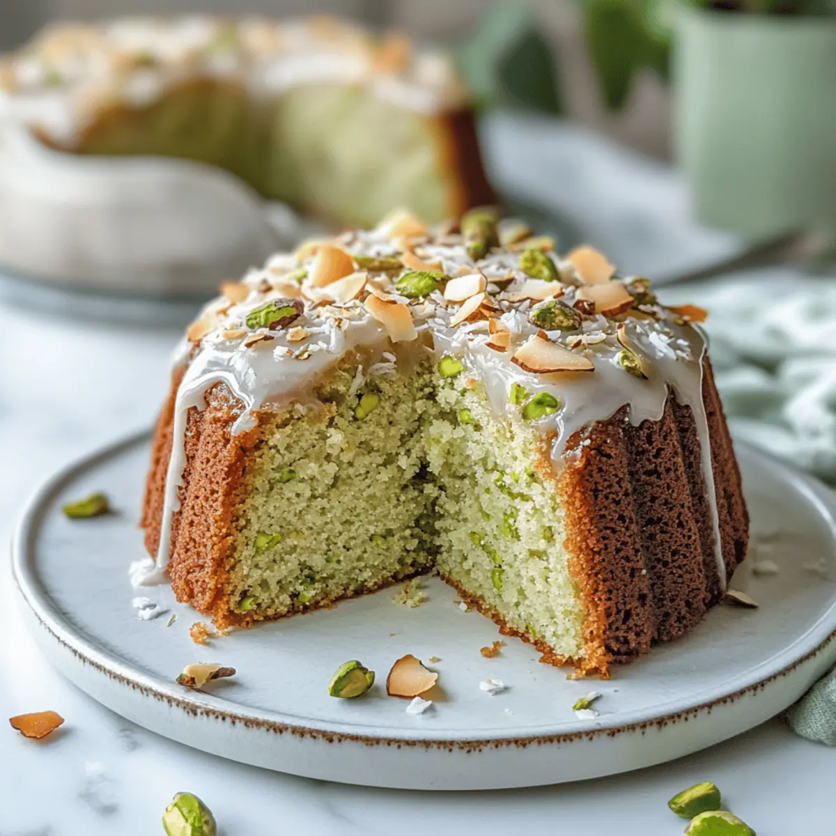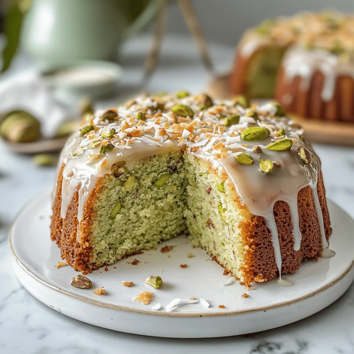 Jump to Recipe Print RecipeAs I strolled through a local market, the vibrant colors of fresh produce caught my eye, but it was the rich, nutty aroma of pistachios that drew me in. It inspired me to bring together two beloved flavors in my kitchen with this Coconut and Pistachio Pudding Cake. This easy-to-make dessert combines the creamy richness of coconut with the delightful crunch of pistachios, creating a moist and tender cake that feels celebratory but is wonderfully simple to whip up. With minimal prep time and a stunning presentation, this cake is sure to impress at any gathering, whether it’s a brunch with friends or a cozy family dinner. Curious about how this dessert can become your new go-to? Let’s dive into the deliciousness! Why is this Coconut Cake So Irresistible? Flavor Explosion: The combination of coconut and pistachio creates a cake bursting with rich, nutty flavor that’s hard to resist. Easy Preparation: With a simple mix of ingredients and minimal hands-on time, this dessert comes together effortlessly, making it perfect for busy home cooks. Versatile Treat: Whether you’re celebrating a birthday or just enjoying a weekday treat, this cake fits the bill for any occasion. Showstopper Appearance: The beautiful green flecks from the pistachios and glossy coconut glaze make it a stunning centerpiece at any dessert table. Make Ahead Magic: This pudding cake gets even better with time, making it ideal for prepping in advance. Pair it with a cup of coffee for a delightful coffee break, or serve it alongside Coconut Cream Pancakes for a tropical brunch! Coconut and Pistachio Pudding Cake Ingredients For the Cake White Cake Mix – Forms the cake’s foundation; opt for a gluten-free variety if desired. Instant Pistachio Pudding Mix – Adds moisture and a nutty taste; brings a delightful hue to the cake. Large Eggs (4) – Binds and lifts the cake, ensuring a fluffy texture. Water (1 cup) – Essential for hydration; helps achieve the perfect cake consistency. Vegetable Oil (1/2 cup) – Contributes to moisture; can be swapped with melted butter for more flavor. Shredded Sweetened Coconut (1/2 cup) – Infuses tropical vibes; switch to unsweetened coconut for a less sugary taste. Chopped Pistachios (1/2 cup) – Delivers a satisfying crunch and nutty flavor, enhancing your Coconut and Pistachio Pudding Cake. Almond Extract (1/2 tsp, optional) – Elevates the flavor profile; can be omitted for a lighter touch. For the Coconut Glaze Powdered Sugar (1 cup) – Provides sweetness and smoothness for the glaze. Coconut Milk (2 tbsp or regular milk) – Helps achieve the right pourable consistency; use regular milk for a milder flavor. Vanilla Extract (1/2 tsp) – Deepens the glaze’s flavor, enhancing its sweetness. Toasted Coconut Flakes (1/4 cup) – Adds a crunchy element and boosts the coconut taste. Finely Chopped Pistachios (2 tbsp) – Perfect for garnishing, offering both a decorative appeal and flavor burst. This delightful Coconut and Pistachio Pudding Cake is packed with flavor and perfect for any occasion! Step-by-Step Instructions for Coconut and Pistachio Pudding Cake Step 1: Prepare the Oven and Pan Begin by preheating your oven to 350°F (175°C). Grease a bundt pan or a 9×13-inch baking dish thoroughly with cooking spray or butter to ensure easy release after baking. This step is crucial for a beautiful Coconut and Pistachio Pudding Cake, setting the stage for the lovely shape and texture of your dessert. Step 2: Combine Dry Ingredients In a large mixing bowl, combine the white cake mix and instant pistachio pudding mix. Stir these dry ingredients together until they’re well mixed, promoting an even distribution of flavors. This blend serves as the base for the flavorful Coconut and Pistachio Pudding Cake, ensuring every bite is consistently delicious. Step 3: Mix Wet Ingredients Next, add the large eggs, water, and vegetable oil into the dry mixture. Using an electric mixer, beat on medium speed for 2-3 minutes until the batter is smooth and well-combined. The batter should look thick yet creamy. This mixing introduces air, creating a light, fluffy texture essential for a moist cake. Step 4: Fold in Coconut and Nuts Gently fold in the shredded sweetened coconut and chopped pistachios, along with the almond extract if you’re using it. Use a spatula to avoid overmixing, which keeps the batter light. As you incorporate these ingredients, enjoy the delightful aromas that will elevate your Coconut and Pistachio Pudding Cake to new heights of flavor and texture. Step 5: Transfer and Smooth Batter Pour the luscious batter into your prepared pan, smoothing the top with a spatula for an even surface. This step ensures a uniform cake that bakes evenly. The vibrant green flecks from the pistachios and coconut will make it visually appealing as it transforms in the oven, making this Coconut and Pistachio Pudding Cake truly special. Step 6: Bake Until Perfect Place the pan in the preheated oven and bake for 40-45 minutes. The cake is done when a toothpick inserted into the center comes out clean or with just a few moist crumbs. Keep an eye on the cake’s edges, which should turn a lovely golden brown, signaling its readiness for the next step. Step 7: Cool in the Pan Once baked, remove the cake from the oven and let it cool in the pan for 10 minutes. This resting period helps set the structure, making it easier to remove without breaking. The aroma will fill your kitchen, showcasing the Coconut and Pistachio Pudding Cake’s irresistible scent that invites everyone to the table. Step 8: Transfer to Wire Rack Gently invert the pan onto a wire rack to release the cake, allowing it to cool completely. This step is essential for achieving a nice outer crust and preventing sogginess. Take a moment to admire your cake as the beautiful green and coconut textures are revealed, promising delightful taste. Step 9: Prepare the Coconut Glaze While the cake cools, prepare t