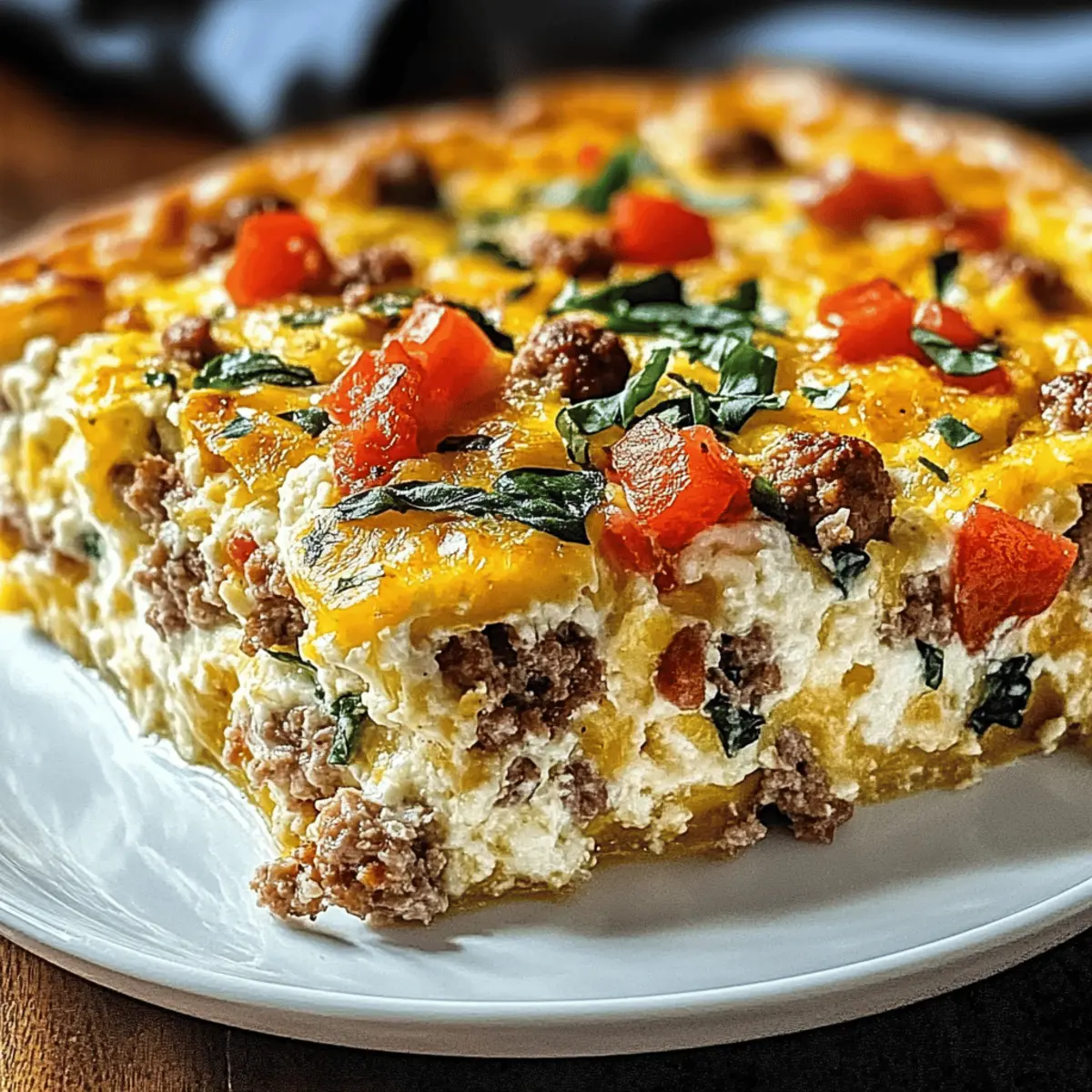 Jump to Recipe Print RecipeAs I poured the last remnants of my morning coffee, a thought struck me—why not elevate breakfast excitement with a twist? That’s when I decided to whip up my High-Protein Cottage Cheese & Turkey Sausage Breakfast Casserole. This delightful dish is not just a feast for the senses; it’s a power-packed way to kickstart your day with wholesome ingredients. What I love most is how customizable it is—whether you’re a meat-lover, vegetarian, or have specific dietary needs, you can easily swap ingredients to make it your own. Plus, it’s perfect for meal prep, freeing you from the morning rush while keeping the family energized and satisfied. Curious how a simple casserole can transform your breakfast game? Let’s dive in! Why Is This Breakfast Casserole a Must-Try? Deliciously Versatile: This Cottage Cheese & Turkey Sausage Breakfast Casserole adapts beautifully to your preferences. Customizable Options let you swap out ingredients to suit your diet, whether you choose chicken sausage or different cheeses. Meal Prep Wonder: Perfect for busy mornings, you can make this casserole ahead of time, allowing you to savor a nutritious breakfast without the hassle. Protein-Packed Goodness: High in protein, this dish fuels your morning and supports muscle maintenance, making it ideal for health enthusiasts. Flavorful Fusion: The creamy cottage cheese pairs delightfully with savory turkey sausage, delivering a satisfying bite that tastes indulgent yet wholesome. Looking for more tasty options? Try my delicious Cheesy Rice Casserole or the hearty Jalapeno Popper Casserole for family-friendly meals you’ll cherish! Cottage Cheese & Turkey Sausage Breakfast Casserole Ingredients For the Casserole • Eggs – Main source of protein; replace with egg whites for a lighter option. • Cottage Cheese – Adds creaminess and protein; can be swapped for ricotta for a different texture. • Turkey Sausage – Provides lean protein; consider chicken sausage or plant-based alternatives for a vegetarian version. • Shredded Mozzarella Cheese – Offers creaminess and flavor; cheddar or feta can be excellent substitutes. • Chopped Spinach (optional) – Boosts nutrients like vitamins A, C, and K; omitting it still yields a delicious dish. • Garlic Powder – Enhances flavor; fresh garlic can intensify the taste if preferred. • Salt and Pepper – Season to taste for a well-rounded flavor in your Cottage Cheese & Turkey Sausage Breakfast Casserole. Step‑by‑Step Instructions for Cottage Cheese & Turkey Sausage Breakfast Casserole Step 1: Preheat the Oven Begin by preheating your oven to 350°F (175°C). While it warms up, take a moment to grease a 9×13-inch baking dish with cooking spray or a light coating of olive oil. This will ensure that your Cottage Cheese & Turkey Sausage Breakfast Casserole slides out easily after baking, creating a beautiful presentation for serving. Step 2: Whisk the Eggs In a large mixing bowl, crack open a dozen eggs, then add in the cottage cheese, garlic powder, salt, and pepper. Use a whisk to beat everything together until the mixture is smooth and well combined, taking about 2-3 minutes. The creamy texture of the cottage cheese will blend lightly with the eggs, setting a flavorful base for your casserole. Step 3: Mix in Fillings Next, incorporate the crumbled turkey sausage into the egg mixture, followed by the shredded mozzarella cheese and chopped spinach if using. Stir gently but thoroughly until all ingredients are evenly distributed throughout the mixture. This step enhances the protein content and adds delightful textures to your Cottage Cheese & Turkey Sausage Breakfast Casserole. Step 4: Bake the Casserole Pour the combined mixture into the prepared baking dish, making sure to spread it out evenly. Place the dish in the preheated oven and bake for 35 to 40 minutes, or until the center is set and the top is golden brown. Keep an eye on it—the visual cue of a slight puff and golden color indicates it’s perfectly done! Step 5: Cool and Serve Once baked, carefully remove your casserole from the oven and let it cool for about 5 to 10 minutes. This cooling period will make slicing easier. Cut into squares and serve warm, allowing the flavors of the Cottage Cheese & Turkey Sausage Breakfast Casserole to shine through. Enjoy! Storage Tips for Cottage Cheese & Turkey Sausage Breakfast Casserole Fridge: Store leftovers in an airtight container for up to 4 days. This keeps your Cottage Cheese & Turkey Sausage Breakfast Casserole fresh and ready for reheating. Freezer: For longer storage, freeze the casserole for up to 3 months. Cut it into portions and wrap each piece tightly in plastic wrap before placing them in a freezer-safe bag. Reheating: When ready to enjoy, thaw overnight in the fridge. Reheat in the oven at 350°F (175°C) for about 15-20 minutes, ensuring each slice is warmed through without losing its creamy texture. Make-Ahead: You can prepare the casserole and refrigerate it for up to 24 hours before baking. This allows you to have a wholesome breakfast ready to pop in the oven when you need it. What to Serve with High-Protein Cottage Cheese & Turkey Sausage Breakfast Casserole Start your day right by complementing this decadent breakfast casserole with delightful side dishes that enhance your meal experience. Fresh Fruit Salad: A colorful mix of seasonal fruits adds a refreshing burst of sweetness, balancing the savory notes of the casserole. Light Green Salad: Crisp greens tossed with a lemon vinaigrette bring a crunchy contrast, while the brightness cuts through the richness of the dish. Crispy Hash Browns: Golden, crispy hash browns provide a satisfying crunch, perfectly pairing with the soft textures of the casserole for a hearty brunch. Grilled Asparagus: Tender yet slightly charred asparagus introduces a fresh flavor that complements the comforting elements of the casserole nicely. Avocado Toast: Creamy avocado smea