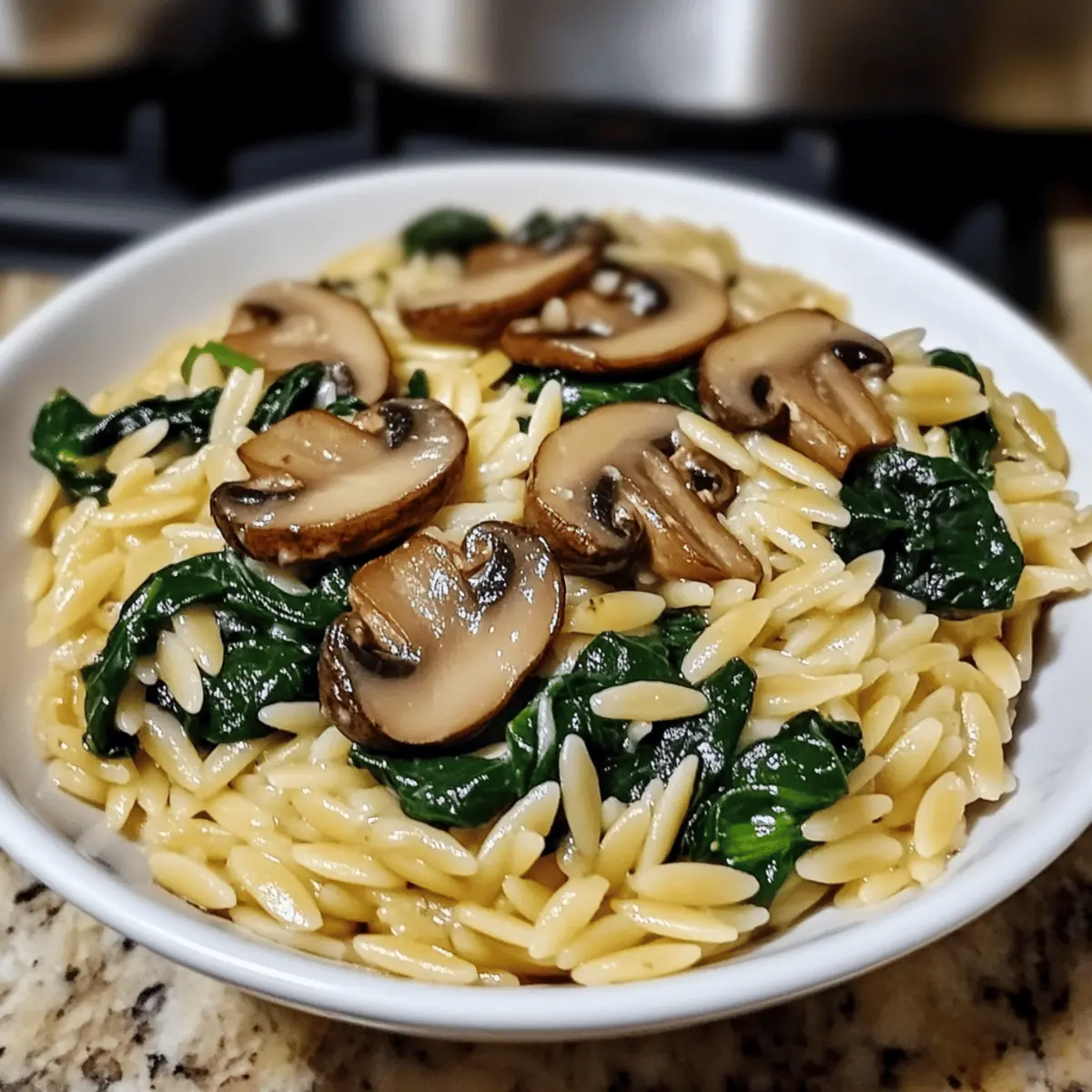 Creamy Garlic Butter Orzo with Mushrooms and Spinach Delight