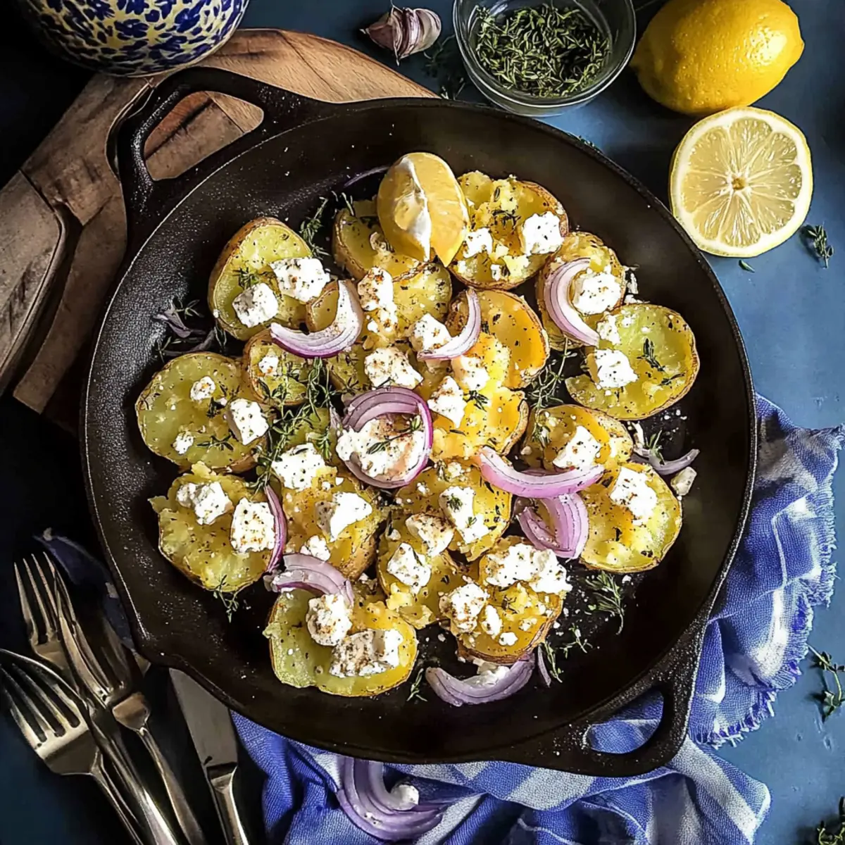 Jump to Recipe Print RecipeAs I pulled a golden tray from the oven, the irresistible aroma of crispy potatoes and fragrant rosemary wafted through my kitchen, offering a warm invitation. These Quick Greek Smashed Potatoes with Feta are everything a comforting side dish should be: easy to whip up and utterly satisfying. With their delightful combination of fluffy interiors and crunchy edges topped with tangy feta, they pair perfectly with grilled meats or stand beautifully on their own as a vegetarian delight. Plus, you can choose between air fryer or oven methods for meal prep convenience. Whether you’re preparing a cozy family dinner or looking for an impressive addition to a gathering, these potatoes promise to be a showstopper. Are you ready to elevate your potato game? Let’s dive into this delicious recipe! Why are these potatoes a must-try? Simplicity: The recipe is quick and straightforward, perfect for busy home cooks or seasoned chefs alike. Crispy Meets Creamy: Enjoy the delightful contrast of crispy edges and fluffy interiors, delivering a texture that will have your taste buds dancing. Flavor Explosion: The combination of tangy feta, fragrant rosemary, and a hint of lemon brightens every bite, making it irresistible. Versatile Side Dish: These potatoes pair beautifully with grilled meats, fish, or can stand alone as a hearty vegetarian option. Make-Ahead Friendly: Ideal for meal prep; you can easily whip these up ahead of time and just reheat for a quick side. Elevate your dining experience by serving these alongside Parmesan Baby Potatoes or Butter Chicken Bites, and watch your guests rave about this delicious dish! Greek Smashed Potatoes with Feta Ingredients For the Potatoes • Potatoes – Use 8-12 medium roasting potatoes for the ideal texture; Yukon Gold or small baby potatoes work well too. • Olive Oil – Essential for crisping and flavor; drizzle as needed, and consider avocado oil as a substitute. For the Flavor • Feta Cheese – 200g (7oz) crumbled feta adds a rich, creamy tang; try Manouri cheese for a delightful variation. • Garlic – Use 2 large cloves, sliced, to impart a warm depth; no direct substitution recommended. • Red Onion – Slice into thin rounds for sweetness and texture; shallots are a great alternative. • Capers or Olives – Opt for 3 tbsp to introduce a briny sharpness; sliced black olives can be used instead. • Rosemary – A small torn sprig adds an aromatic, earthy note; thyme or oregano are lovely alternatives. • Lemon – Cut into quarters to provide brightness and acidity; other citrus options like lime can also work. For Seasoning • Salt and Pepper – Essential for enhancing flavors; adjust to your personal taste for the perfect balance. These Greek Smashed Potatoes with Feta are a delightful blend of flavors that promise a satisfying comfort food experience! Step‑by‑Step Instructions for Greek Smashed Potatoes with Feta Step 1: Preheat Your Oven Begin by preheating your oven to 200°C (400°F). While the oven is heating, take a large skillet or roasting tray and drizzle it with olive oil, making sure to evenly coat the surface. This oil will help achieve that crispy texture on the Greek Smashed Potatoes with Feta that you’re aiming for. Step 2: Microwave the Potatoes Rinse the medium roasting potatoes thoroughly and use a fork to pierce them a few times. Place the potatoes in a microwave-safe bowl, cover them with a damp paper towel, and microwave on full power for 7-12 minutes until they are tender. You’ll know they’re ready when you can easily insert a knife through the potatoes. Step 3: Smash the Potatoes Once the potatoes are tender, carefully transfer them to the oiled skillet. Using the bottom of a bowl or a large fork, gently smash each potato to expose the fluffy insides while keeping their shape intact. This step is crucial for creating the perfect texture in your Greek Smashed Potatoes with Feta. Step 4: Season the Potatoes Drizzle the smashed potatoes generously with olive oil, then sprinkle them with salt, pepper, sliced garlic, and torn rosemary. Additionally, nestle lemon wedges amongst the potatoes to infuse a delightful brightness while they bake. This blend of flavors will elevate your potatoes beautifully. Step 5: Roast to Perfection Place the skillet in the preheated oven and roast the potatoes for 10 minutes or until the skins start to turn a lovely golden brown. During this time, your kitchen will fill with delicious aromas, signaling that your Greek Smashed Potatoes with Feta are on their way to crispy perfection. Step 6: Add Flavorful Toppings After the initial roast, take the skillet out of the oven and scatter crumbled feta, thinly sliced red onion, and capers over the potatoes. Return the skillet to the oven for an additional 5 minutes, allowing the cheeses to warm and the flavors to meld. Step 7: Serve and Enjoy Once the Greek Smashed Potatoes with Feta are nicely roasted and the toppings are golden, squeeze fresh lemon juice over the top for a final burst of flavor. Serve these sizzling, aromatic potatoes immediately as a comforting side dish or a hearty vegetarian main. Greek Smashed Potatoes with Feta Variations Feel free to explore these fun twists and swaps to make this dish truly yours! Dairy-Free: Replace feta with a dairy-free alternative like almond feta for a vegan-friendly version. Herb-Inspired: Swap in fresh dill or parsley for a different flavor profile; it will brighten the dish beautifully! Spicy Kick: Add a sprinkle of red pepper flakes before baking for a touch of heat. Perfect for those who crave a little spice! Creamy Delight: Top with a dollop of Greek yogurt or tzatziki before serving to enhance the creaminess and provide depth. Sweet & Savory: Incorporate roasted cherry tomatoes alongside the potatoes for a burst of sweetness that contrasts nicely with the feta. Nutty Crunch: Sprinkle crushed pistachios or walnuts on top just before serving; they add a deli