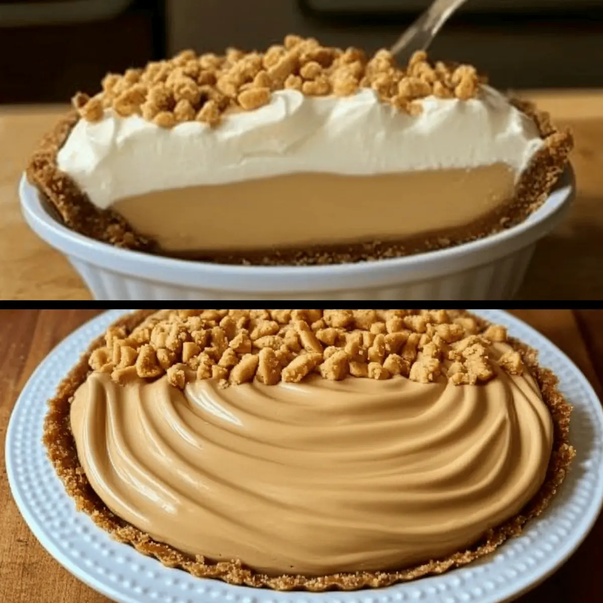 Jump to Recipe Print RecipeAs I sifted through my pantry, a stray jar of creamy peanut butter caught my eye, sending my mind racing to dessert possibilities. That’s when the idea struck me: a delightful no-bake Peanut Butter Cream Pie! This Amish-inspired classic combines a rich, nutty filling with a crumbly graham cracker crust, ensuring it’s a crowd-pleaser at any gathering. With its effortless preparation, this creamy dessert comes together in no time, making it ideal for busy days or unexpected guests. Plus, you can make it ahead of time, allowing flavors to meld beautifully overnight. If you’re ready to indulge in a blissful, homemade treat that’s as comforting as it is delicious, let’s dive in and create this dreamy pie together! How tempted are you to give this a try? Why is Peanut Butter Cream Pie the Best? Irresistible comfort: This no-bake treat combines the nostalgic flavors of peanut butter and cream cheese into a luscious pie that feels like a warm hug. Effortless preparation: You don’t need to be a pro baker to whip this up; it’s designed for everyone, even on those busy weeknights when you crave something sweet. Make-ahead convenience: You can prepare this pie in advance, allowing it to chill overnight for the best flavor and texture—perfect for gatherings or surprise guests! Versatile flavors: Feel free to customize by using almond butter for a twist or adding chocolate chips for a deliciously decadent variation that everyone will love. Allergy-friendly options: By substituting ingredients, like using a gluten-free crust, this pie can accommodate different dietary needs, making it a fantastic staple for any occasion! Peanut Butter Cream Pie Ingredients For the Crust • Graham Cracker Crust – Provides a sweet, crunchy base; consider using a gluten-free crust for gluten-sensitive diets. For the Filling • Peanut Butter – Adds rich, nutty flavor and contributes to the crumb topping; crunchy peanut butter can enhance texture. • Cream Cheese – Contributes creaminess and richness to the filling; make sure it’s softened for easy blending. • Powdered Sugar – Sweetens the peanut butter mixture and helps create a crumbly texture; adjust to taste. • Heavy Cream – Whipped to create lightness and fluffiness in the filling; achieving soft peaks is key. • Granulated Sugar – Sweetens the cream cheese mixture; feel free to reduce for a less sweet pie. • Vanilla Extract – Adds depth of flavor; use pure vanilla for the best results. • Vanilla Pudding Mix – Thickens the filling; you can substitute with homemade pudding if it’s thick enough. • Cold Milk – Acts as a base for the pudding mix; ensure it’s cold for proper thickening. For the Topping • Peanut Butter Crumbles – Reserved from the crust mixture, these add extra nutty crunch on top of the pie; ensure they’re evenly sprinkled. Now that you have everything ready, gather your ingredients and let’s get pie-making! This Peanut Butter Cream Pie will surely become a beloved dessert in your home. Step‑by‑Step Instructions for Peanut Butter Cream Pie Step 1: Prepare the Peanut Butter Crumbs In a mixing bowl, combine creamy peanut butter and powdered sugar, mixing until the mixture is crumbly yet holds together slightly. This should take about 1-2 minutes of blending with a spatula. Look for a sandy texture that still clumps when pressed. Reserve half of this mixture for the topping. Step 2: Beat the Cream Cheese Mixture In a separate bowl, beat the softened cream cheese and granulated sugar with an electric mixer on medium speed until the mixture is smooth and creamy, about 3-4 minutes. Gradually add in the heavy cream and vanilla extract, continuing to whip the mixture until it becomes light and fluffy with soft peaks forming. Step 3: Combine the Pudding In another bowl, whisk the cold milk and vanilla pudding mix together vigorously for about 2-3 minutes until the mixture thickens noticeably. You want a smooth, cohesive blend that doesn’t run off the whisk. This will be the essential thickening agent for your Peanut Butter Cream Pie filling. Step 4: Fold in the Pudding Gently fold the thickened pudding mixture into the whipped cream cheese mixture using a rubber spatula. Be sure to incorporate it thoroughly without deflating the whipped cream, creating a rich, creamy filling. The combination should be smooth, flowing yet slightly thickened. Step 5: Assemble the Pie Spread half of the reserved peanut butter crumb mixture evenly across the bottom of your graham cracker crust, pressing down gently to create a firm layer. This will add an extra crunchy texture to your Peanut Butter Cream Pie and enhance the flavors as it chills. Step 6: Add the Cream Filling Pour the creamy filling over the crumb layer, using a spatula to smooth the top evenly. It should be luscious and thick, filling every nook of the crust. Aim for a flat surface to help the pie set beautifully as it chills in the refrigerator. Step 7: Top with Crumbles Sprinkle the remaining peanut butter crumb mixture evenly over the top of the filling. This adds a delightful crunch and visual appeal to your Peanut Butter Cream Pie. Be generous to ensure that every slice gets a taste of that nutty goodness. Step 8: Chill the Pie Refrigerate the pie for at least 4 hours, preferably overnight, to allow it to set fully. Cover it with plastic wrap to prevent any fridge odors from seeping in. This chilling process ensures that flavors meld beautifully and the texture becomes perfectly creamy. Step 9: Serve and Enjoy Once chilled, slice your Peanut Butter Cream Pie into generous pieces and serve chilled. It pairs wonderfully with a cup of black coffee or a glass of milk. Relish the delightful creamy texture and rich, nutty flavor that makes this pie a true dessert classic! How to Store and Freeze Peanut Butter Cream Pie Fridge: Store your Peanut Butter Cream Pie in the refrigerator, covered with plastic wrap, for up to 3 days. T