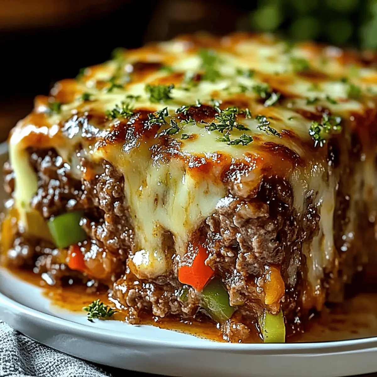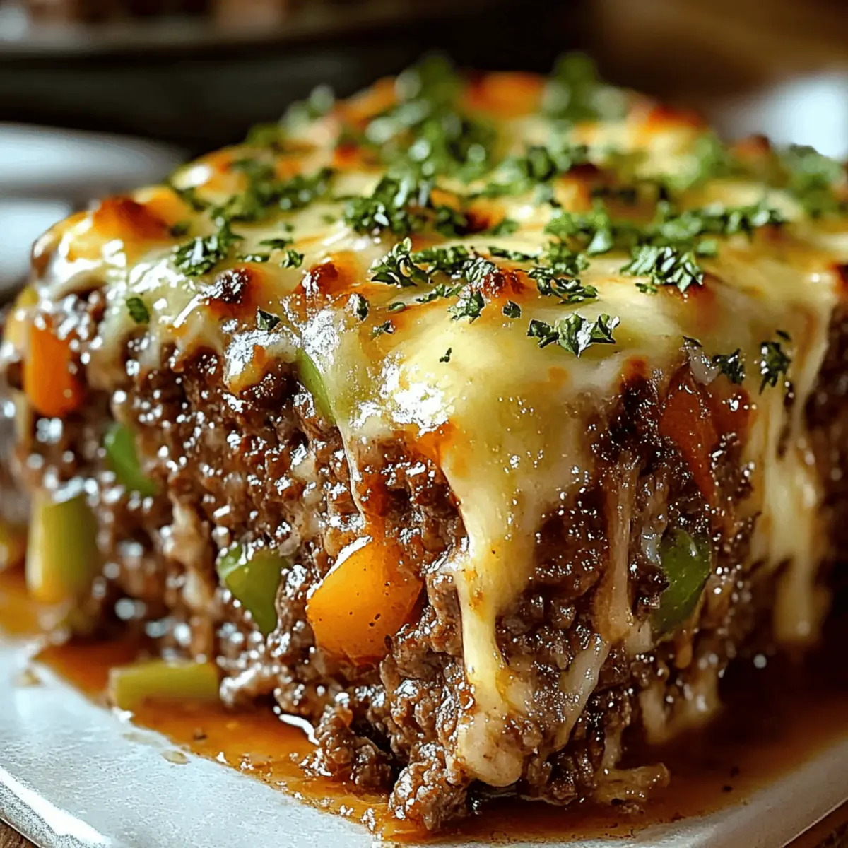 Jump to Recipe Print RecipeAs I was tucking into a classic Philly cheesesteak last week, a lightbulb moment struck! Why not capture all those mouthwatering flavors in a cozy meatloaf? Enter my Cheesy Philly Cheesesteak Meatloaf—a scrumptious fusion that elevates weeknight dinners. This delightful recipe offers the tender comfort of meatloaf while celebrating the beefy, cheesy goodness of its sandwich counterpart. It’s quick to prep, making it a fantastic option for busy cooks, and your family will adore every juicy slice. Imagine digging into a hearty meal packed with sautéed onions, bell peppers, and a gooey layer of provolone cheese! Are you ready to make this twist on a beloved classic? Let’s dive in and recreate this comforting dish together! Why is this meatloaf so special? Uniquely Delicious: This Philly Cheesesteak Meatloaf reimagines a classic favorite, capturing all the flavors of a cheesesteak in a hearty, comforting loaf. Simple Preparation: The recipe is quick and straightforward, perfect for a busy weeknight yet impressive enough for gatherings. Family-Friendly: Kids and adults alike will rave about the cheesy goodness and savory beef, making it the star of the dinner table. Versatile Options: Feel free to customize it—experiment with different cheeses or add veggies like mushrooms for a nutritious twist! Convenient Storage: Leftovers are great for easy lunches, and the meatloaf freezes beautifully, making meal prep a breeze. Check out more on meal prep ideas to stay organized! Philly Cheesesteak Meatloaf Ingredients For the Meatloaf Ground Beef – A source of savory flavor and protein; opt for lean ground beef for a healthier choice. Breadcrumbs – Essential for binding; use gluten-free breadcrumbs to make this a gluten-free option. Egg – Binds the ingredients, ensuring the meatloaf holds its shape. Milk – Adds moisture for a tender texture throughout the meatloaf. Worcestershire Sauce – Infuses the mixture with umami goodness, echoing classic cheesesteak flavors. Garlic Powder – Elevates the flavor with aromatic, savory notes. Salt & Pepper – A must to enhance the overall taste of the dish. For the Filling Green Bell Pepper – Adds a sweet, crunchy element; substitute with red or yellow bell peppers for a pop of color and flavor. Onion – Brings aromatic sweetness; a crucial component in achieving that beloved cheesesteak taste. Olive Oil – Ideal for sautéing vegetables; can be swapped with any cooking oil of your choice. For the Cheese Topping Provolone Cheese – The star ingredient, it melts beautifully and brings that creamy cheesesteak experience; try mozzarella or Swiss cheese for variety. For Garnish Fresh Parsley (Optional) – Adds a vibrant splash of color and fresh flavor to the finished dish. Step‑by‑Step Instructions for Philly Cheesesteak Meatloaf Step 1: Preheat the Oven Begin by preheating your oven to 375°F (190°C). This temperature will ensure that your Philly Cheesesteak Meatloaf cooks evenly and develops a deliciously browned exterior. While the oven heats up, you can prepare the filling and meat mixture, ensuring everything is ready for assembly. Step 2: Sauté the Vegetables In a medium skillet, heat 2 tablespoons of olive oil over medium heat. Add the diced green bell pepper and onion, sautéing for about 5 minutes, or until the vegetables are softened and fragrant. Once done, remove from heat and allow the veggies to cool slightly while you prepare the meat mixture. Step 3: Combine the Meatloaf Ingredients In a large mixing bowl, combine 1 pound of ground beef, 1 cup of breadcrumbs, 1 beaten egg, ½ cup of milk, 2 tablespoons of Worcestershire sauce, 1 teaspoon of garlic powder, and season with salt and pepper to taste. Mix the ingredients gently until just combined—overmixing may result in a tough meatloaf, so be careful! Step 4: Assemble the Meatloaf Take half of the meat mixture and press it evenly into the bottom of a loaf pan, creating a solid base. Layer 4 slices of provolone cheese over the meat, then spoon the sautéed onions and bell peppers on top. Finally, place the remaining meat mixture on top, sealing the edges to keep the filling secure. Step 5: Bake the Meatloaf Place the assembled Philly Cheesesteak Meatloaf in the preheated oven and bake it for 45-50 minutes. This will allow the meatloaf to cook through and develop a beautiful crust. Keep an eye on it and check for doneness; the internal temperature should reach 160°F (70°C). Step 6: Add More Cheese In the last 5 minutes of baking, remove the meatloaf from the oven and carefully add any remaining provolone cheese on top. Return it to the oven and bake until the cheese is melted and bubbly, about 5 minutes. This step enhances the cheesiness, bringing out the classic flavors of a Philly cheesesteak! Step 7: Rest and Serve Once baked to perfection, allow the Philly Cheesesteak Meatloaf to rest for 5-10 minutes before slicing. This resting period helps the juices redistribute throughout, keeping each slice tender and flavorful. Garnish with fresh parsley if desired, and serve alongside your favorite sides for a comforting meal! Make Ahead Options These Philly Cheesesteak Meatloaf are perfect for busy home cooks looking to save time during the week! You can assemble the meatloaf up to 24 hours in advance, simply cover it with plastic wrap and refrigerate. To maintain its juicy texture and flavors, be sure to keep the filling sealed inside without overmixing the meat mixture. When you’re ready to enjoy, just pop it in the oven and bake as instructed—allowing it to cook to perfection while you focus on preparing your favorite sides. This means less last-minute work and a heartwarming meal that’s just as delicious as if made fresh! Expert Tips for Philly Cheesesteak Meatloaf Don’t Overmix: Gently combine the ingredients to preserve the tender texture of the Philly Cheesesteak Meatloaf. Overmixing can lead to a dense loaf. Let the Veggies Cool: Sa