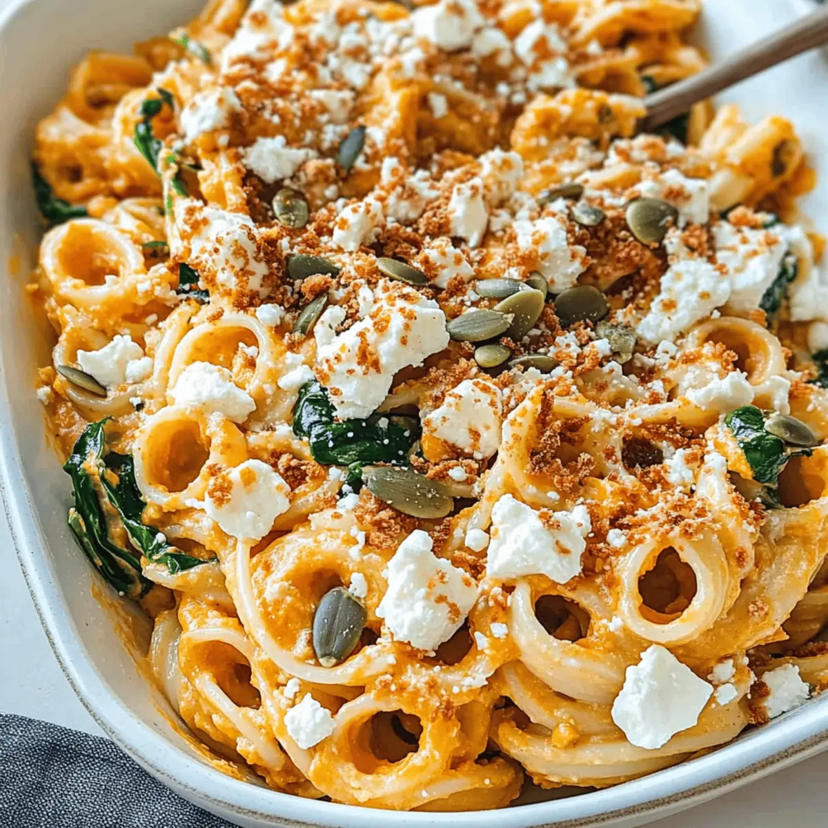 Enjoy this comforting Pumpkin Feta Pasta, a perfect fall dish that's quick and easy to prepare.