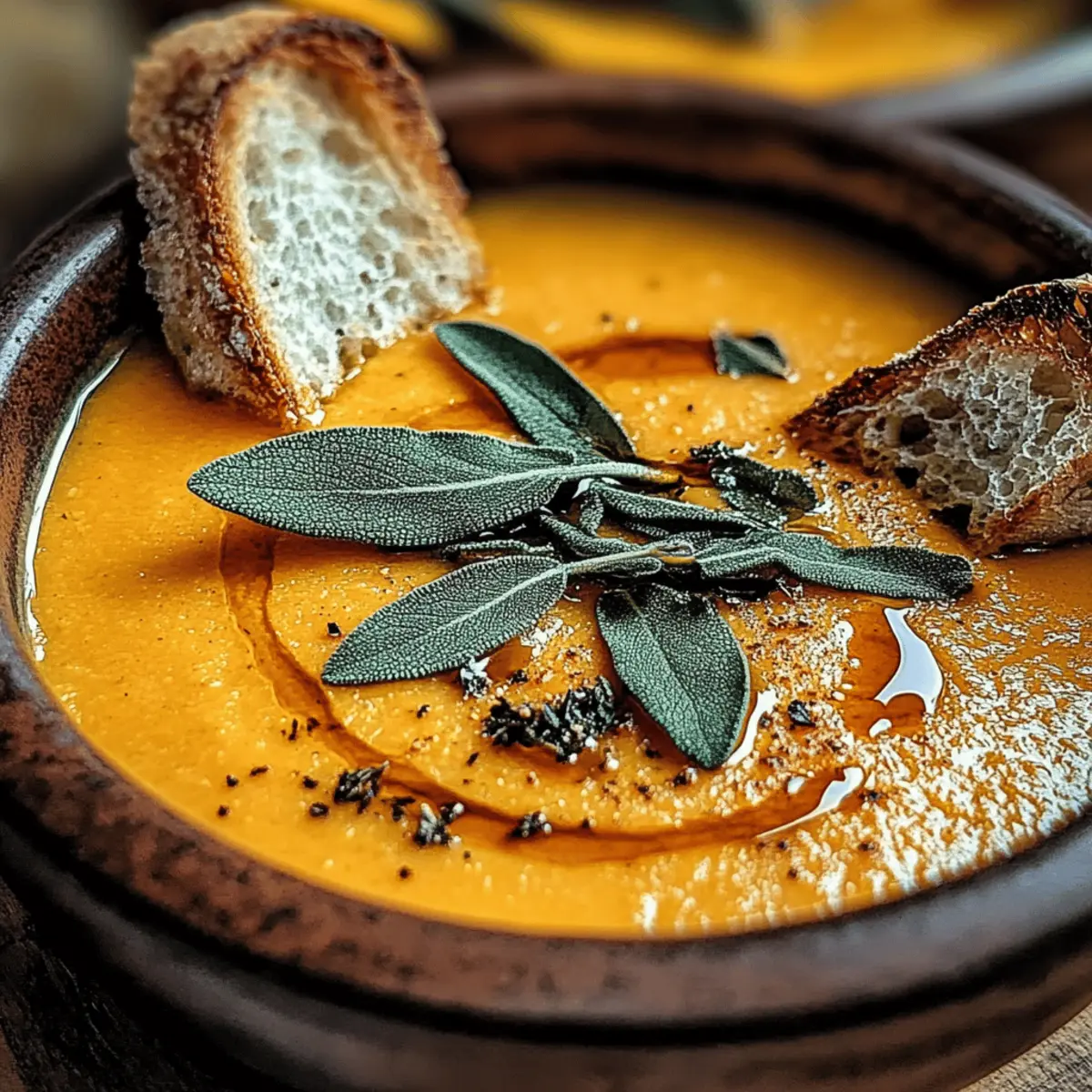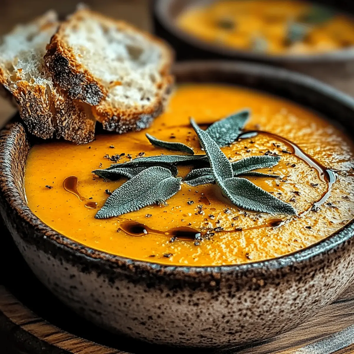 Jump to Recipe Print RecipeAs the leaves begin to crunch underfoot and the air turns crisp, my kitchen transforms into a cozy haven, filled with the inviting aroma of warm spices and roasted pumpkin. This Harvest Delight Pumpkin Sage Bisque is my go-to recipe for celebrating autumn—a creamy, savory delight that wraps you in comfort after a long day. Not only does it embrace the rich flavors of the season, but it’s also incredibly versatile—perfect for those who opt for vegan or gluten-free options. With minimal prep time, this bisque is a crowd-pleaser that’s as nourishing as it is delicious. So, are you ready to bring the essence of fall right into your bowl? Why is this bisque a fall favorite? Creamy Comfort: This Harvest Delight Pumpkin Sage Bisque delivers a lush, velvety consistency that warms your soul. It’s the ultimate snuggly meal for chilly nights. Flavor Explosion: Combining pumpkin and sage provides an irresistible harmony of sweet and savory flavors that evoke the essence of autumn. Quick Preparation: With minimal effort, you can whip this up in just 30 minutes, making it a perfect option for busy weeknights. Versatile Options: Easily adapt this recipe to suit dietary needs, whether you prefer a vegan alternative or need it gluten-free. Check out Sausage Egg Cheese and Breakfast Biscuit Sausage for more delicious ideas! Crowd-Pleaser: Serve it at gatherings, and watch it vanish quickly—everyone will be asking for seconds. Garnish Elegance: A simple drizzle of olive oil and a sprinkle of fresh sage elevate the dish, making it as visually appealing as it is tasty. Pumpkin Sage Bisque Ingredients For the Base • Pumpkin Puree – The star ingredient providing natural sweetness and nutrients; fresh sugar pumpkin delivers better flavor, but canned pumpkin offers convenience. • Onion – Adds depth and sweetness to the bisque; be sure to dice and sauté until translucent for optimal flavor. • Garlic – Infuses the dish with robust savory notes; mince and cook briefly to prevent bitterness. • Fresh Sage – Essential for flavor, offering earthy aromas and health benefits; finely chop and sauté for maximum impact. For the Broth • Vegetable Broth – The liquid base enhances the taste profile; homemade broth is preferred for the freshest flavor. For Creaminess • Coconut Milk (or Heavy Cream) – Provides creaminess; coconut milk is a lovely dairy-free alternative that adds subtle sweetness, while heavy cream delivers richness. For Flavor • Spices (Cumin, Nutmeg) – Elevate the flavor complexity; cumin adds warmth, while nutmeg beautifully complements the pumpkin’s sweetness. • Maple Syrup (optional) – Balances the bisque’s flavors without overpowering it; use based on your personal preference. For Serving • Crusty Bread – Provides the perfect texture for dipping; pair it with the bisque for a delightful experience. Bring the flavors of autumn to your table with this Pumpkin Sage Bisque that embraces warmth, comfort, and versatility. Step‑by‑Step Instructions for Harvest Delight Pumpkin Sage Bisque Step 1: Sauté Aromatics In a large pot, heat 2 tablespoons of olive oil over medium heat. Once hot, add 1 diced onion and sauté until it becomes translucent, about 5 minutes. Stir in 2 minced garlic cloves and 2 tablespoons of finely chopped fresh sage, cooking for an additional minute until fragrant. This aromatic base sets the stage for the rich flavors in your Harvest Delight Pumpkin Sage Bisque. Step 2: Add Pumpkin and Spices Next, incorporate 2 cups of pumpkin puree into the pot along with 1 teaspoon of ground cumin and ½ teaspoon of nutmeg. Stir well to combine, allowing the mixture to cook for about 2-3 minutes. During this time, the spices will bloom, enhancing the savory foundation of your bisque. Step 3: Incorporate Broth Pour in 4 cups of vegetable broth, stirring continuously to blend everything smoothly. Increase the heat slightly to bring the mixture to a gentle simmer. Once bubbling, lower the heat and let it cook for 15 minutes, allowing the flavors to meld beautifully in your Harvest Delight Pumpkin Sage Bisque. Step 4: Blend the Bisque After simmering, remove the pot from the heat. Use an immersion blender to puree the bisque until it reaches a silky-smooth consistency. If you prefer, you can transfer the soup batch by batch into a countertop blender. Remember to let it cool slightly if using a traditional blender. Step 5: Finish with Cream Return the blended bisque to low heat. Pour in 1 cup of coconut milk or heavy cream, stirring to combine. Season with salt and pepper to taste, and add a splash of maple syrup if you desire a hint of sweetness. Warm gently without boiling, ensuring the cream incorporates beautifully. Step 6: Serve and Garnish Ladle the flavorful bisque into warm bowls and garnish with a drizzle of olive oil and a sprinkle of fresh sage. Serve hot alongside crusty bread, perfect for dipping. Your Harvest Delight Pumpkin Sage Bisque is ready to warm you from the inside out! How to Store and Freeze Pumpkin Sage Bisque Fridge: Store the bisque in an airtight container for up to 5 days. Make sure to cool it to room temperature before refrigerating to maintain its creamy texture. Freezer: Freeze the bisque in freezer-safe containers or heavy-duty freezer bags for up to 3 months. Leave some space at the top of the container as the soup will expand when frozen. Reheating: To reheat, thaw overnight in the fridge if frozen, then gently warm on the stovetop over low heat, stirring frequently. Add a splash of vegetable broth or coconut milk to restore creaminess if needed. Serving Suggestion: Top with fresh sage and a drizzle of olive oil before serving to enhance the flavor of this comforting Pumpkin Sage bisque. Expert Tips for Pumpkin Sage Bisque Onion Sweetness: Sauté onions until they’re translucent to bring out their natural sweetness. Overcooking can lead to bitterness, ruining your bisque. Texture Control: F